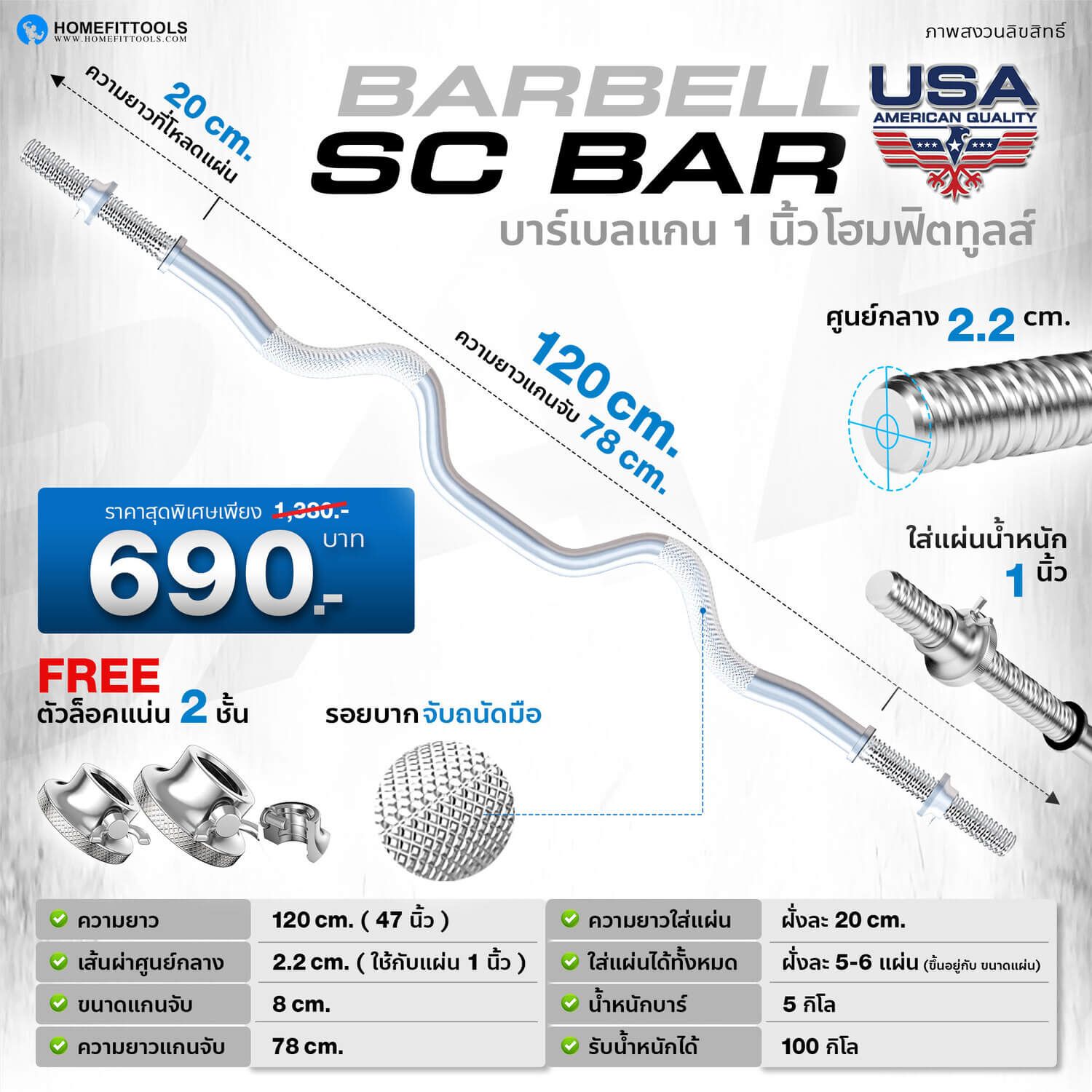 แถมฟรี เกลียวล๊อคพิเศษ 2 ชั้น บาร์เบลล์ชนิดหนึ่ง ที่ออกแบบมาเป็นรูปโค้ง เพื่อป้องกันอาการบาดเจ็บที่ข้อมือ