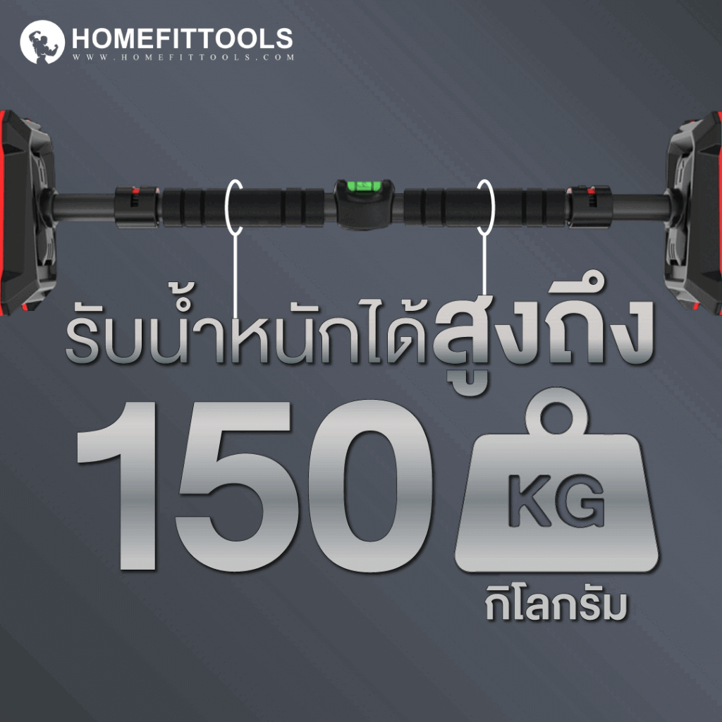 - บาร์โหนมีที่วัดระดับน้ำ เพื่อให้ง่ายต่อการติดตั้ง และเมื่อติดตั้งกับผนังหรือขอบประตูทั้งสองด้าน จะตรงและพอดี