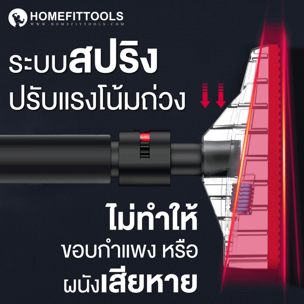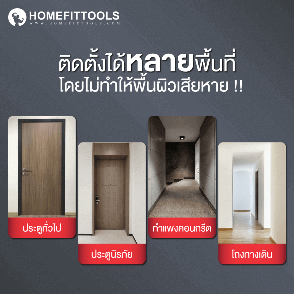 - ติดตั้งง่าย ไม่ต้องเจาะ เหมาะสำหรับใช้กับประตู หรือพื้นที่ขนาดกว้าง