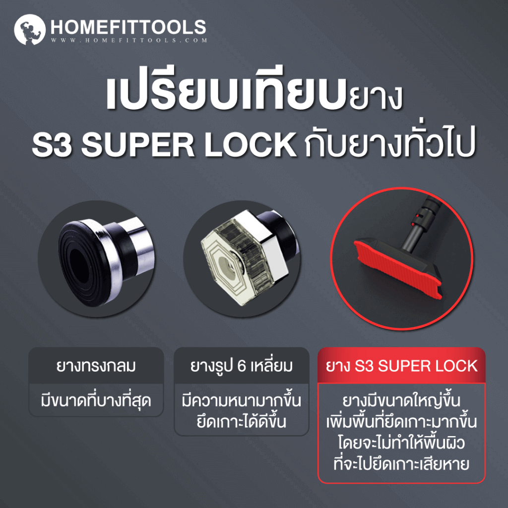 - ด้วยระบบล็อค 3 ชั้นและการออกแบบที่แข็งแรง บาร์ดึงข้อ S3 Super Lock มอบความมั่นใจในการใช้งานแม้ในท่าออกกำลังกายที่ต้องใช้แรงมาก
