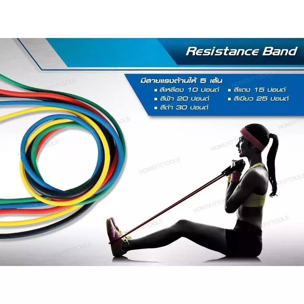 ยางยืดออกกําลังกายแรงต้าน Resistance Band ของ Homefittools สามารถเลือกปรับระดับได้ ตั้งแต่ 10Lbs จนถึง 100 Lbs ความยาวของยางยืดออกกําลังกายแรงต้าน Resistance Band รุ่นใหม่พิเศษนั้น ยาวถึง 120 เซนติเมตร มีทั้งหมด 5 สี 5 ระดับ แต่ละสีจะมีแรงต้านที่ไม่เท่ากัน
