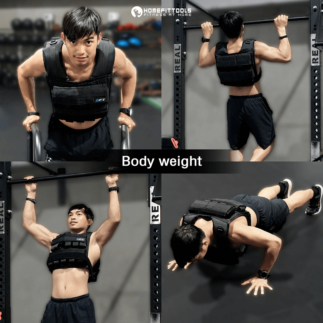ใช้สำหรับกิจกรรมการออกกำลังกาย แบบ bodyweight การออกกำลังกายโดยใช้น้ำหนักตัวเองเป็นแรงต้าน คนที่ฝึกอยุ่เป็นประจำ จะทำให้ร่างกายชินกับน้ำหนักตัวเอง เสื้อถ่วงจะมาตอบโจทย์ ในการเพิ่มน้ำหนักตัวเพื่อ เพื่อฝึกความเข้มข้นในการ เล่นท่า body weight ของผู้ใช้งาน