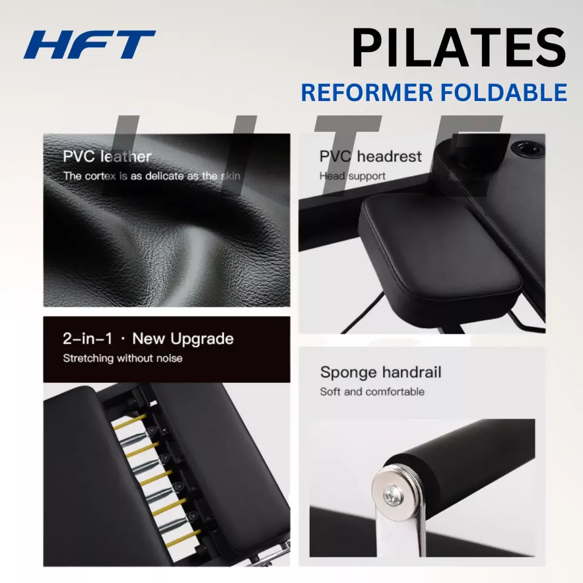 เครื่อง Pilates Foldable Lite เหมาะกับพื้นที่บ้านหรือคอนโด มีโครงสร้างแข็งแรง ฟองน้ำหนาแน่น หนัง PU กันน้ำ ปรับแรงต้านได้หลากหลาย พร้อมอุปกรณ์เสริมครบชุด ฝึกกล้ามเนื้อได้ครบทุกส่วน เหมาะกับผู้ฝึกมือใหม่และผู้ที่ต้องการฝึกระดับกลาง