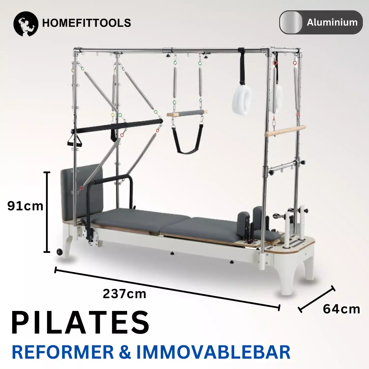 เพิ่มความแข็งแรงและความยืดหยุ่นของร่างกายด้วย Pilates Reformer & Immovable Bar อุปกรณ์พิลาทิสคุณภาพสูงที่ออกแบบด้วยวัสดุ อลูมิเนียม แข็งแรง ทนทาน เหมาะสำหรับทุกระดับความฟิต มาพร้อมขนาดมาตรฐานที่ 237 ซม. x 64 ซม. x 91 ซม. ช่วยให้ผู้ใช้มีความสะดวกสบายในการออกกำลังกาย