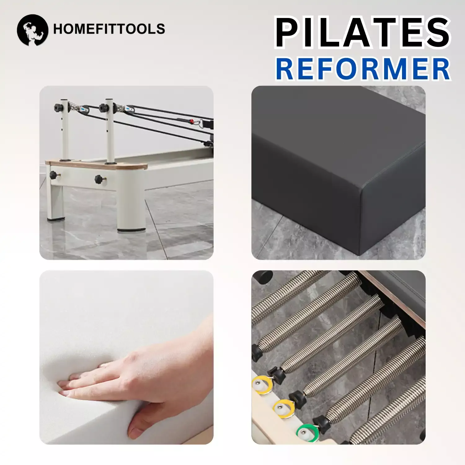 Pilates Reformer จาก HOMEFITTOOLS ออกแบบด้วยวัสดุอลูมิเนียมคุณภาพสูง แข็งแรง ทนทาน รองรับน้ำหนักได้สูงสุดถึง 150 กก. เหมาะสำหรับทุกคนที่ต้องการเสริมสร้างความแข็งแรงและความยืดหยุ่นของร่างกาย มาพร้อมขนาดมาตรฐาน 240 ซม. x 69 ซม. x 32 ซม. ช่วยให้การฝึกพิลาทิสมีประสิทธิภาพในทุกท่วงท่า สำหรับผู้ที่สนใจอุปกรณ์อื่น ๆ ที่ช่วยพัฒนาการออกกำลังกายแบบพิลาทิส สามารถดูเพิ่มเติมได้ใน หมวดหมู่สินค้าอุปกรณ์พิลาทิส