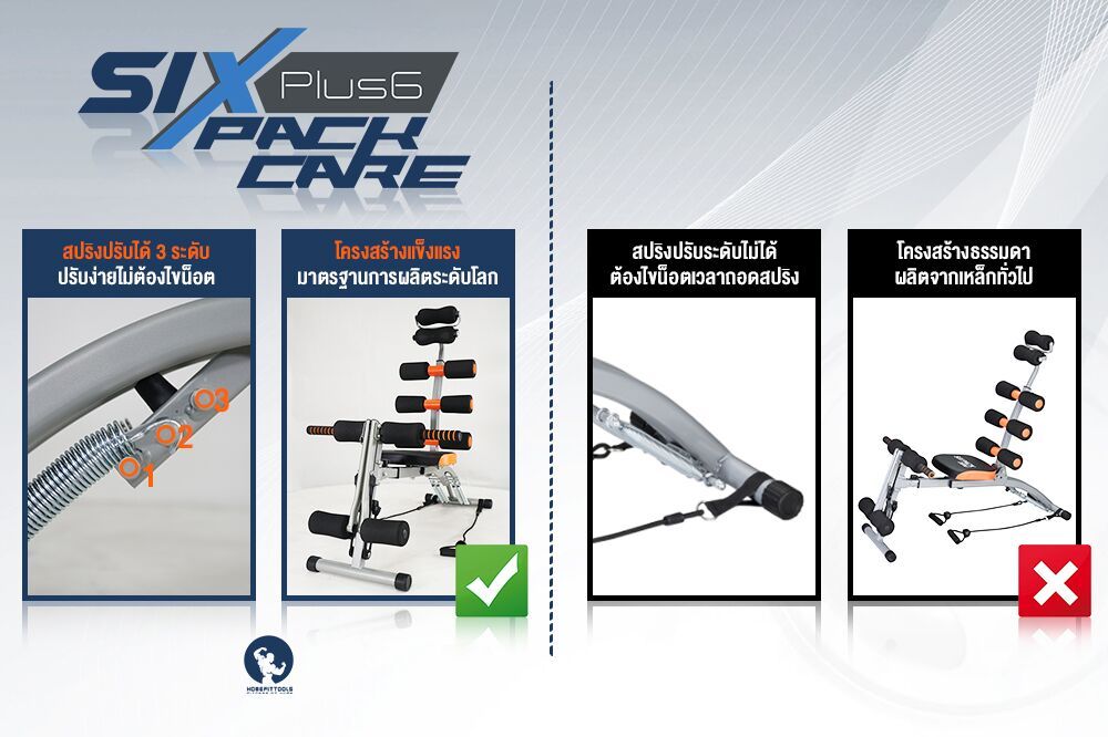 เเครื่องเดียวที่จะทำให้คุณมี Six Pack ได้อย่างง่ายดาย แก้ปัญหาจุดอ่อนต่างของ Six Pack บริหารส่วนกลางลำตัวทั้งหมดได้อย่างสมบูรณ์แบบเพื่อการสลายไขมัน ง่ายต่อการออกกำลังกาย และ เสริมสร้างกล้ามเนื้อหน้าท้องได้อย่างรวดเร็ว ปลอดภัยด้วยหมอนรอง (SPONGE) ที่ช่วยประคองตลอดแนวแผ่นหลังและคอ ใช้บริหาร หน้าท้องส่วนบน ล่าง ด้านข้างทั้งซ้าย-ขวา และส่วนหลัง ช่วยให้หน้าท้องกระชับได้ตามแบบที่คุณต้องการ มีสายยางยืดแรงต้านบริเวณส่วนขา ทำให้ออกกำลังกายขาได้อีกด้วย