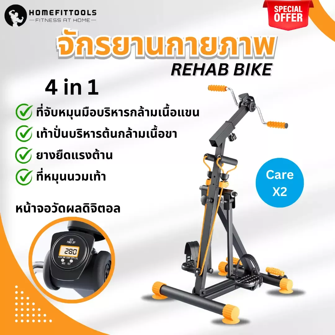 Care X-2 คือ จักรยานกายภาพบำบัด แบบครบวงจรที่ออกแบบเพื่อการฟื้นฟูสมรรถภาพของผู้สูงอายุและผู้มีข้อจำกัดในการเคลื่อนไหว ด้วยฟังก์ชัน 4-in-1 ในเครื่องเดียว ทั้งปั่นแขน ปั่นขา ดึงแรงต้าน และนวดฝ่าเท้า เหมาะอย่างยิ่งสำหรับใช้งานในบ้านหรือสถานพยาบาล ประหยัดพื้นที่ ตอบโจทย์ทุกการฟื้นฟูร่างกาย