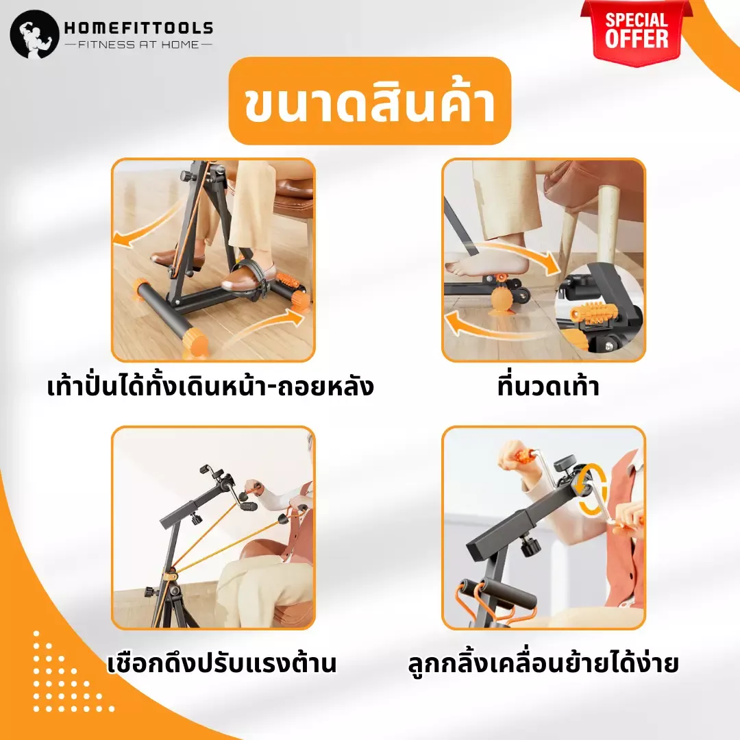 A: เพียงวางฝ่าเท้าบนแป้นนวดแล้วขยับเบา ๆ ไปมา จะช่วยผ่อนคลายหลังปั่นขาหรือโยกขา