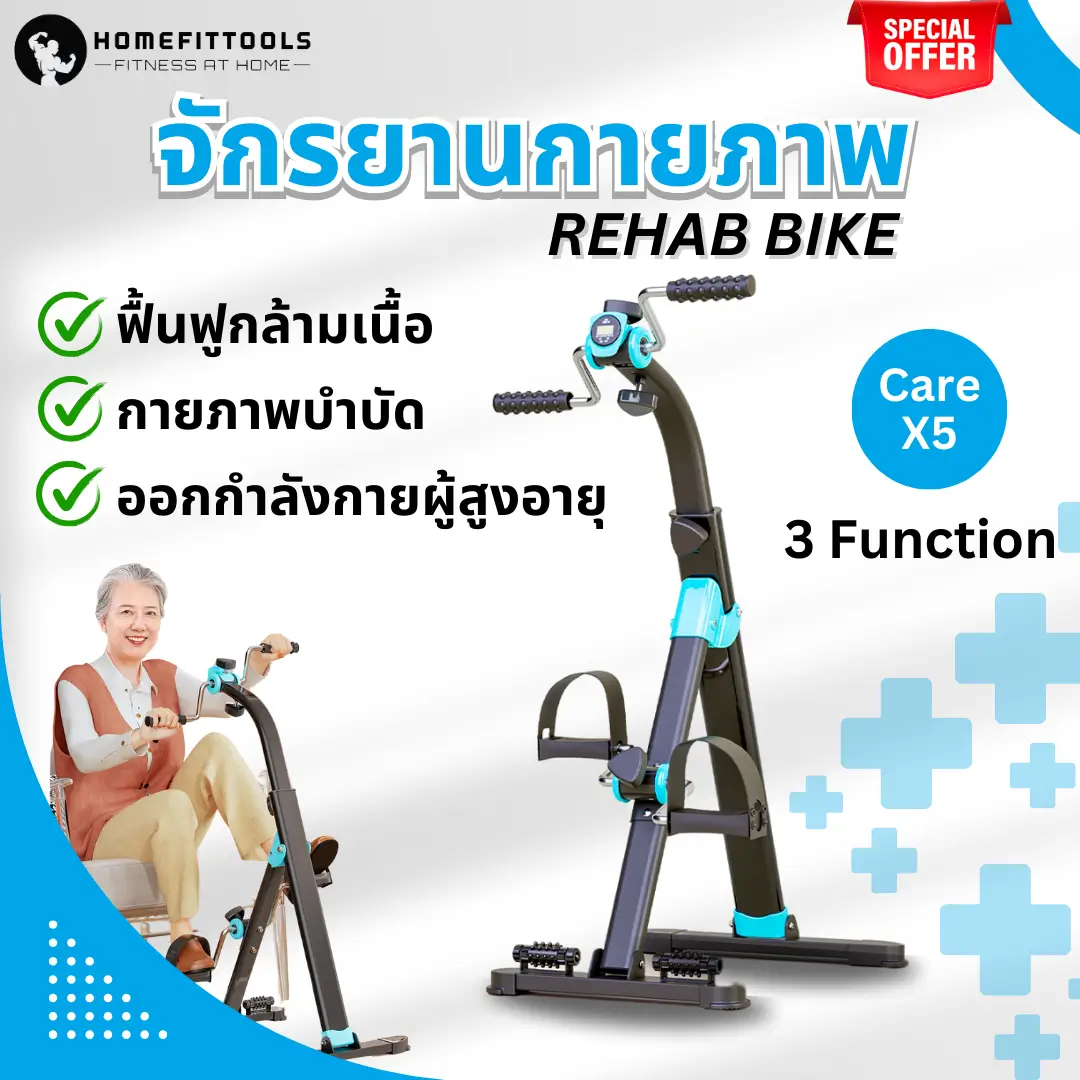 จักรยานกายภาพบำบัดแบบพับเก็บได้ รุ่น Care X-5 ที่รวม 3 ฟังก์ชันสำคัญไว้ในเครื่องเดียว ทั้งปั่นแขน ปั่นขา และนวดฝ่าเท้า เหมาะสำหรับการใช้งานในบ้านหรือสถานพยาบาล โดยเฉพาะผู้สูงอายุ หรือผู้ที่อยู่ในช่วงฟื้นฟูหลังการผ่าตัดที่ต้องการอุปกรณ์ที่ใช้งานง่าย ครบฟังก์ชัน และประหยัดพื้นที่
