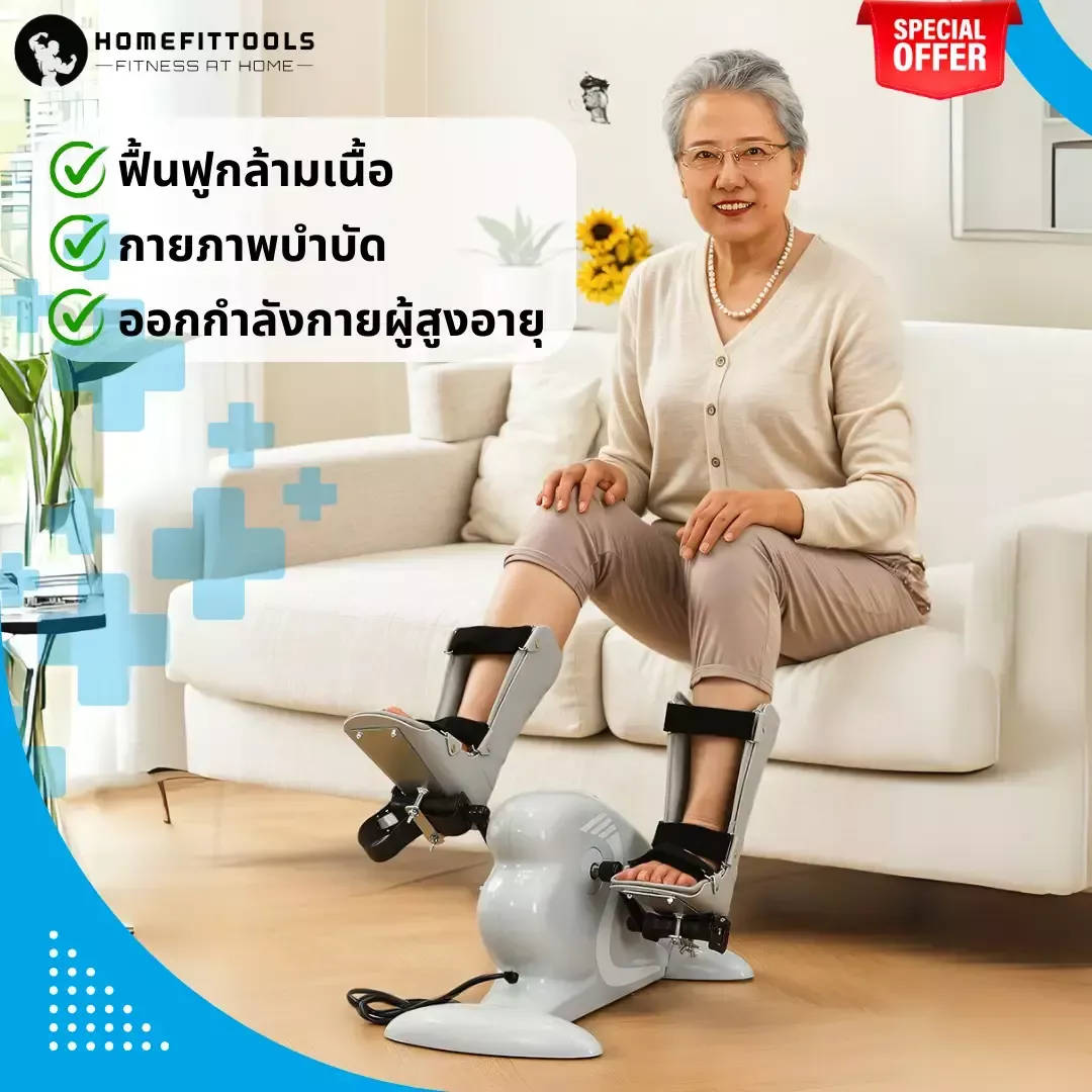 A: ใช้ได้แน่นอนครับ ไม่ต้องใช้แรงปั่น ระบบจะหมุนขาให้อัตโนมัติ เหมาะสำหรับผู้สูงอายุที่แรงน้อย