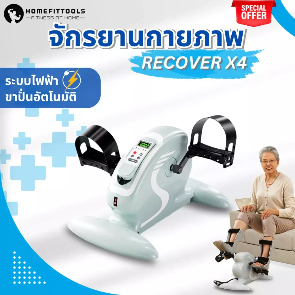 จักรยานกายภาพบำบัดระบบไฟฟ้า Recover X4 ออกแบบมาเพื่อช่วยฟื้นฟูสมรรถภาพขาอย่างอัตโนมัติ เหมาะสำหรับผู้สูงอายุ ผู้ที่ฟื้นตัวจากการผ่าตัด หรือผู้ที่มีข้อจำกัดในการเคลื่อนไหว ด้วยฟังก์ชัน ขาปั่นอัตโนมัติ, ปรับระดับความเร็วได้ถึง 12 ระดับ และมีรีโมทควบคุม เพิ่มความสะดวกสบายขณะใช้งานในทุกช่วงวัย