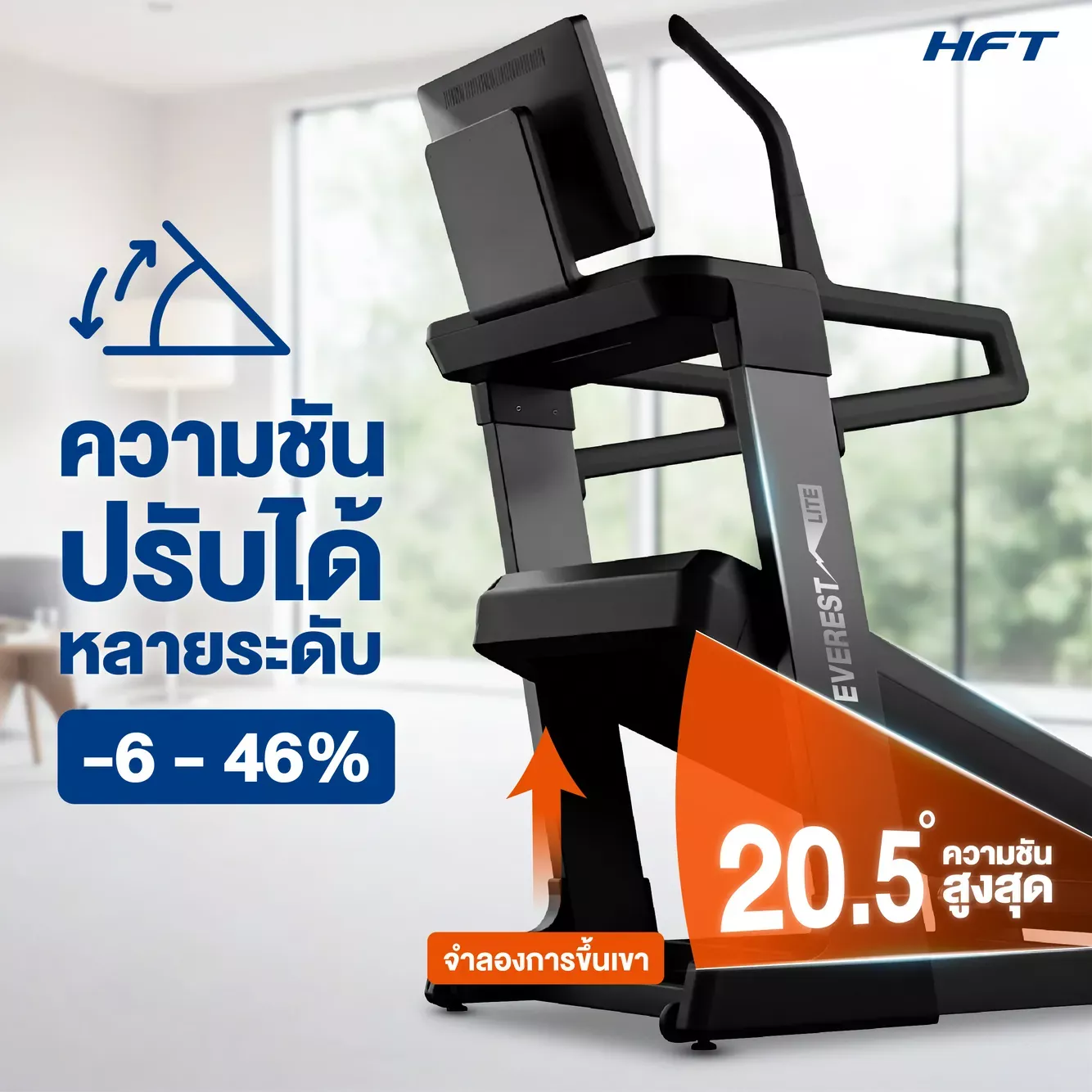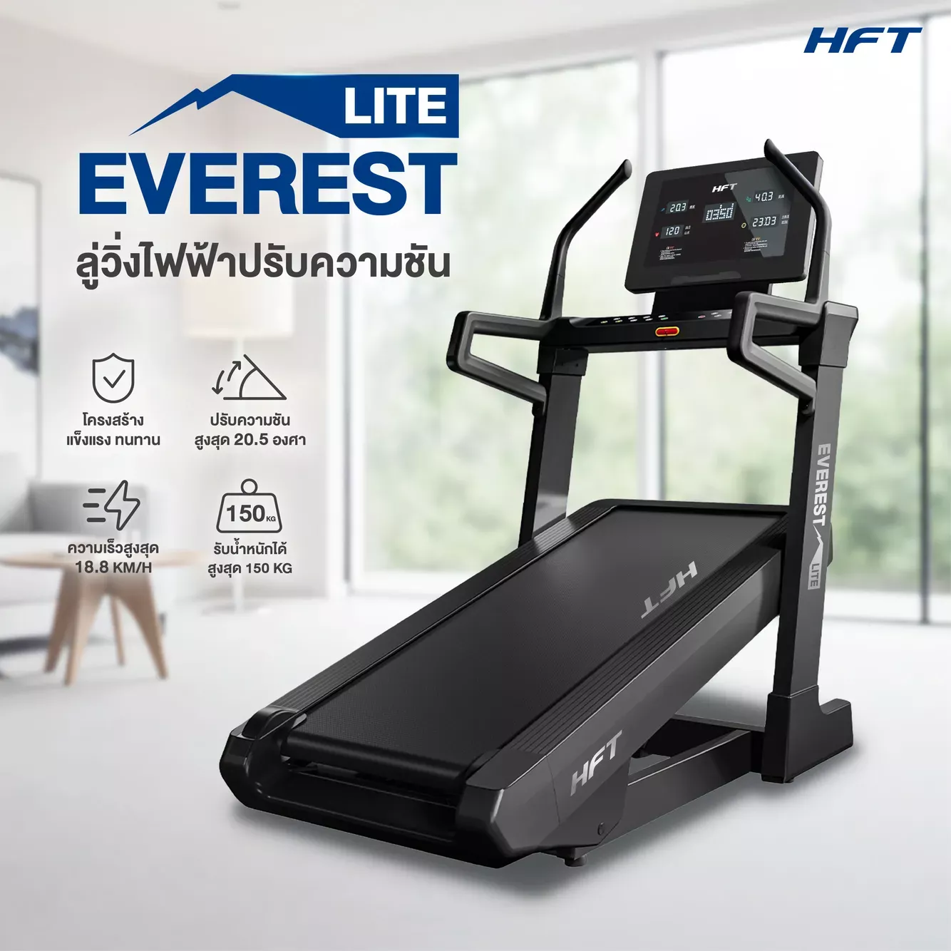 สำหรับผู้ที่ต้องการออกกำลังกายที่บ้านหรือในฟิตเนส ลู่วิ่งไฟฟ้าปรับความชัน รุ่น Everest Incline Treadmill (Lite) คือเครื่องออกกำลังกายที่ตอบโจทย์ทุกความต้องการ ด้วยมอเตอร์ DC Brushless Peak 4.5HP และความชันสูงสุดถึง -6% - 46% ทำให้คุณสามารถวิ่งหรือเดินบนความชันเสมือนการขึ้นเขาจริง เพิ่มแรงต้านเพื่อเผาผลาญไขมันและสร้างกล้ามเนื้อช่วงล่างได้อย่างมีประสิทธิภาพ