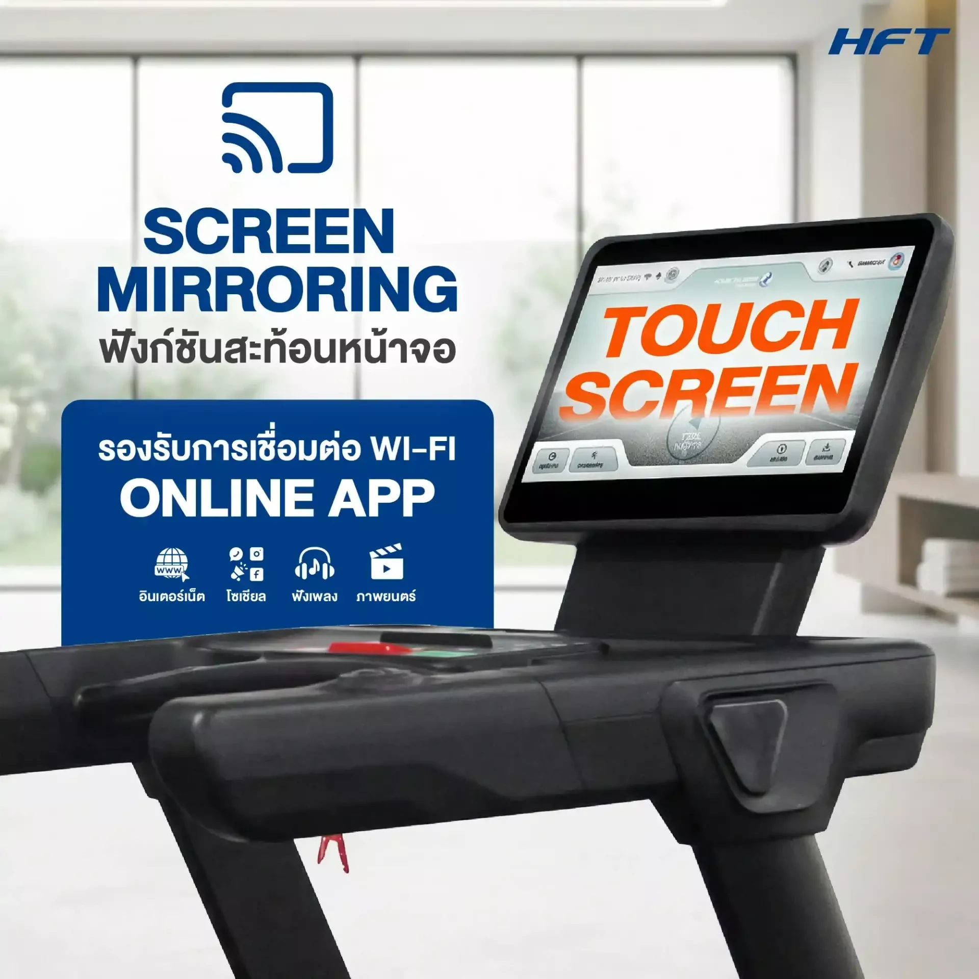 หากคุณเคยประทับใจกับ ลู่วิ่งไฟฟ้า HFT S7 ลู่วิ่งไฟฟ้าปรับชัน รุ่น HFT S7 Pro คือ การยกระดับอย่างสมบูรณ์แบบ ที่มาพร้อมเทคโนโลยี Smart Touch Screen ขนาด 18.5 นิ้ว และระบบเชื่อมต่อออนไลน์ครบเครื่อง ทั้ง Wi-Fi, FitSHOW App, Bluetooth, Mirror Display, USB และ Wireless Charging ซึ่งถือเป็นหนึ่งใน ลู่วิ่งไฟฟ้าเกรดฟิตเนส (Commercial Incline Treadmill) ที่ผสานความแข็งแกร่งระดับฟิตเนสจริง เข้ากับความหรูหราแบบ Smart Device ยุคใหม่ได้อย่างลงตัว