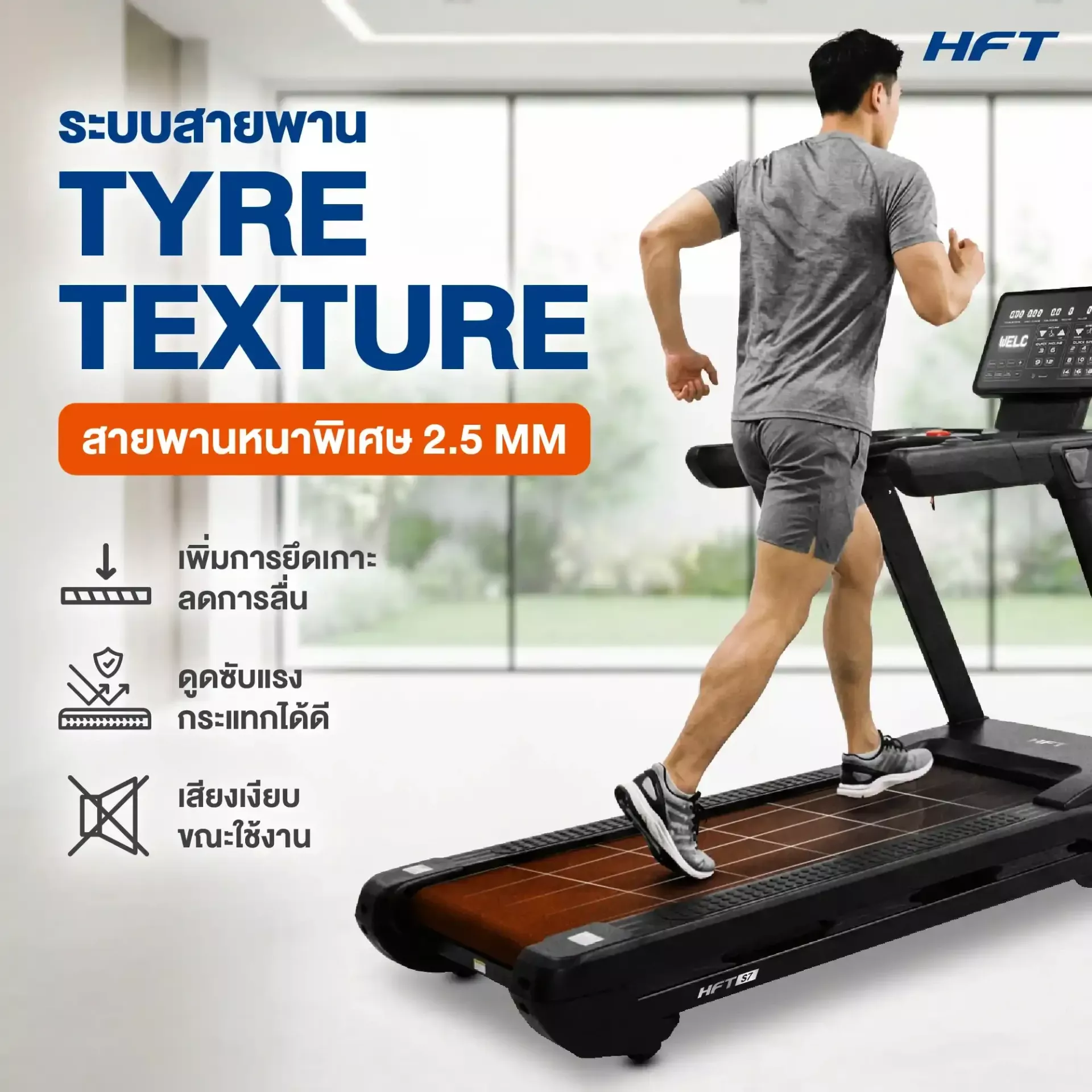 สิ่งที่ทำให้ HFT S7 แตกต่างจากลู่วิ่งทั่วไปคือ “ความสมดุลระหว่างพลัง ความทน และความหรูหรา” ไม่ว่าจะเป็นหน้าจอ LED ขนาด 7 นิ้ว ที่แสดงผลอย่างคมชัด โครงสร้างขนาดใหญ่แข็งแรง รองรับน้ำหนักผู้ใช้ได้ถึง 150 กิโลกรัม และระบบสายพาน Tyre-Texture Belt หนา 2.5 มม. ที่มอบสัมผัสการวิ่งที่นุ่มสบาย ลดแรงกระแทกได้ยอดเยี่ยม