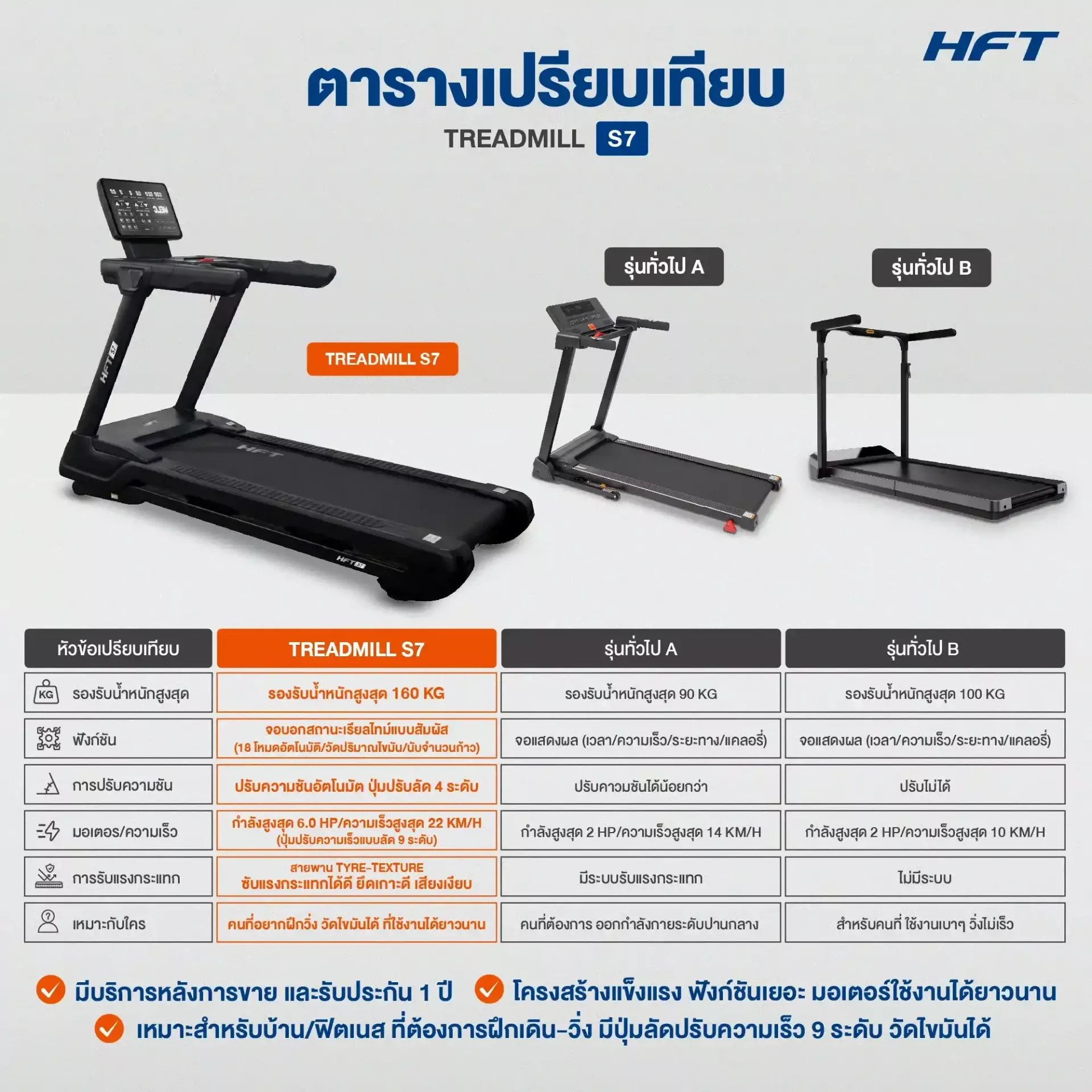 HFT S7 ไม่ใช่แค่เครื่องออกกำลังกาย แต่คือเครื่อง “ฝึกสมรรถนะระดับโปร” ที่มอบทั้งพลัง ความทนทาน และความหรูหราที่คุณสัมผัสได้ทุกครั้งที่ก้าว