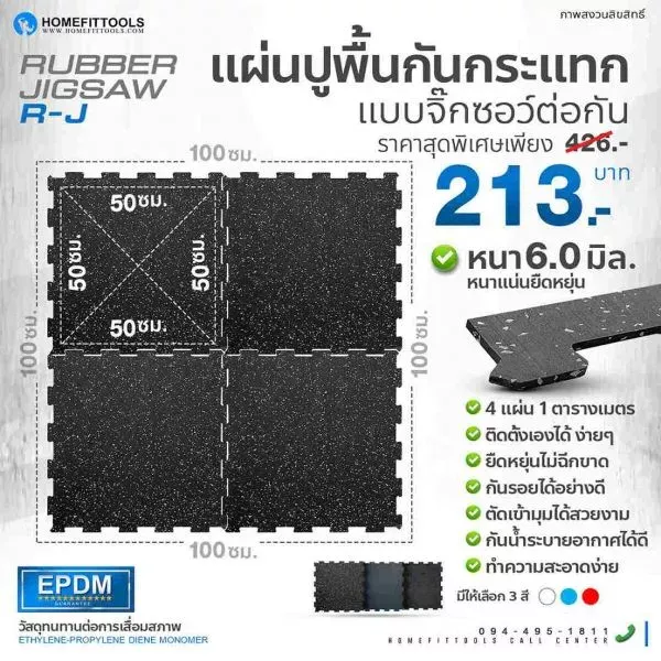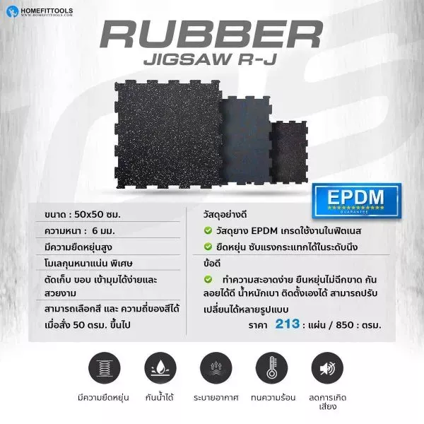 แผ่นยางปูพื้นฟิตเนส Rubber Jigsaw R-J ของ Homefittools ผลิตจากยางคุณภาพสูง รองรับแรงกระแทก ลดเสียงรบกวน และป้องกันพื้นเสียหาย เหมาะสำหรับ ฟิตเนส ยิม และ Home Gym ช่วยให้การออกกำลังกายปลอดภัยขึ้น ติดตั้งง่าย ยืดหยุ่นสูง รองรับการใช้งานหนัก ปูได้ทั้งในร่มและกลางแจ้ง