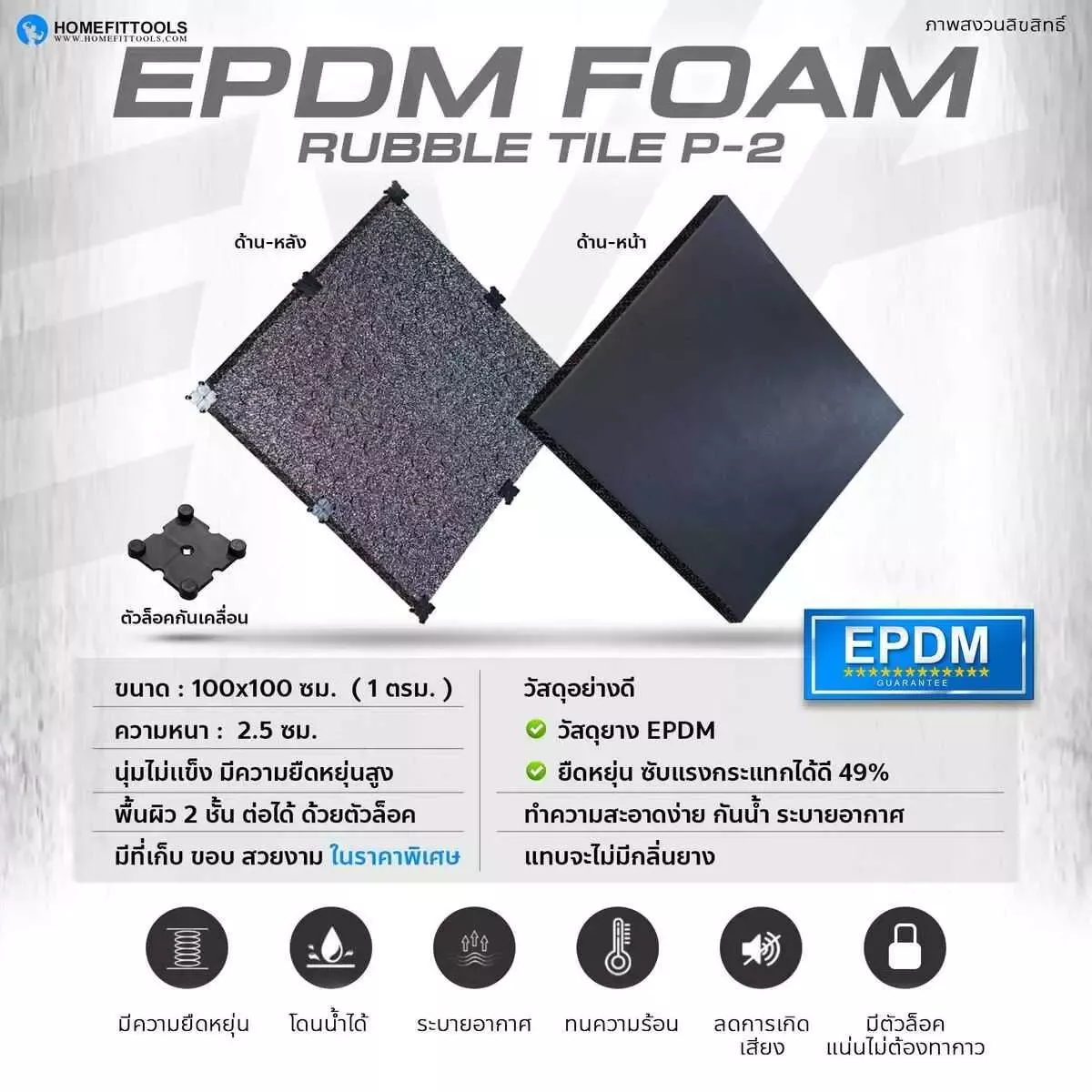 แผ่นปูพื้นกันกระแทก RUBBER TILE รุ่น P-2 ออกแบบมาเพื่อรองรับแรงกระแทกสูง ลดเสียงรบกวน และป้องกันพื้นจากความเสียหาย ผลิตจาก ยาง EPDM คุณภาพสูง ขนาด 100x100 ซม. หนา 2.5 ซม. ซับแรงกระแทกได้ถึง 49% พร้อมคุณสมบัติ กันน้ำ กันฝุ่น ทำความสะอาดง่าย และ ไม่มีกลิ่นเหม็นจากยาง เหมาะสำหรับติดตั้งในฟิตเนส ห้องยกน้ำหนัก และโซนออกกำลังกายที่ต้องการ ความปลอดภัยและความทนทานเป็นพิเศษ มาพร้อม ตัวล็อคในตัว ทำให้ ติดตั้งง่าย ไม่ต้องใช้กาว