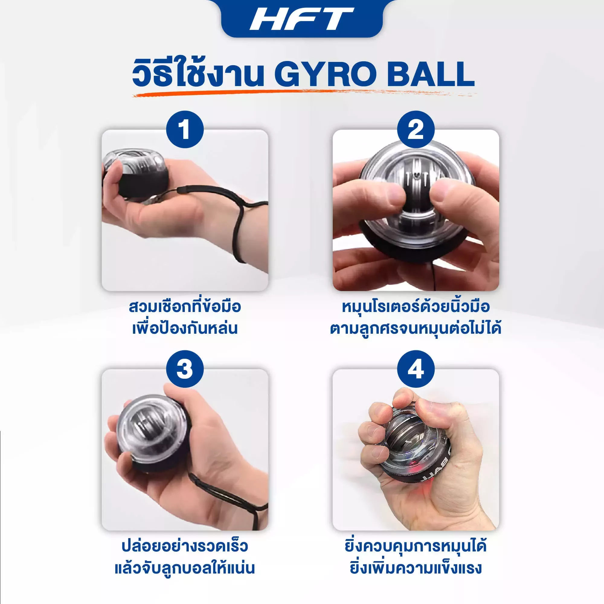 ไจโรบอล Gyro Ball (หรือ Power Ball / Wrist Gyro) เป็นอุปกรณ์ออกกำลังกายขนาดกะทัดรัดที่ออกแบบมาเพื่อเพิ่ม ความแข็งแรงของข้อมือและปลายแขน (forearm & wrist) อย่างมีประสิทธิภาพด้วยกลไกไจโรสโคป ให้แรงต้านแบบ “นุ่มต่อเนื่อง” ที่กระตุ้นกล้ามเนื้อเชิงลึกโดยไม่ก่อแรงกระแทก ผลลัพธ์คือ กำลังจับ (grip strength) ที่ดีขึ้น การไหลเวียนบริเวณข้อและกล้ามเนื้อเร็วขึ้น และความเสี่ยงบาดเจ็บจากการใช้งานซ้ำ (RSI) ที่ลดลง