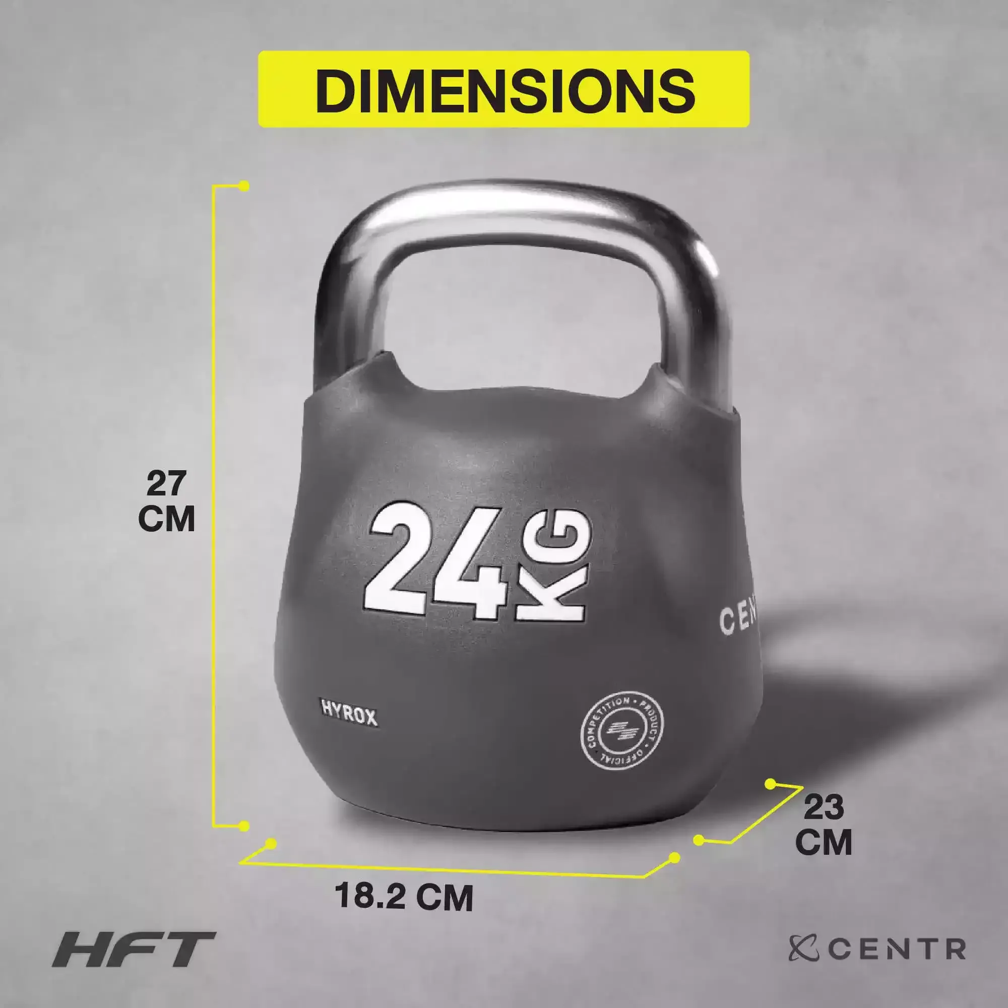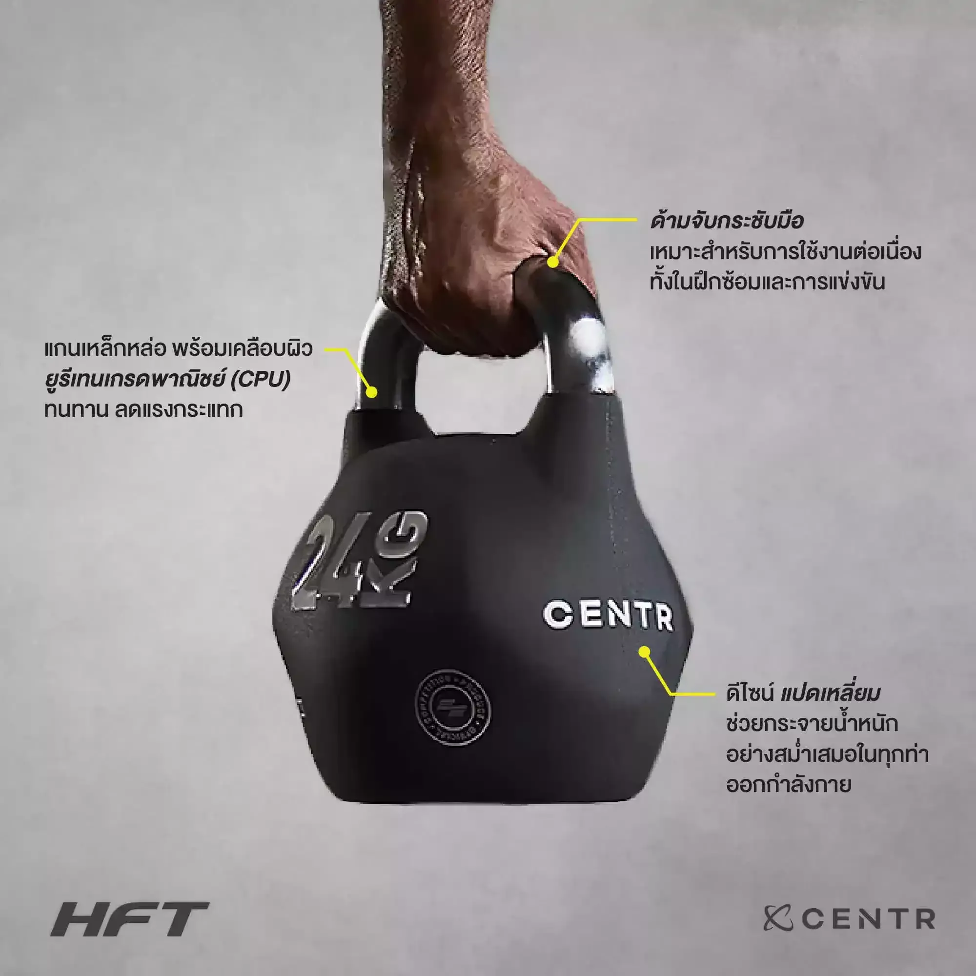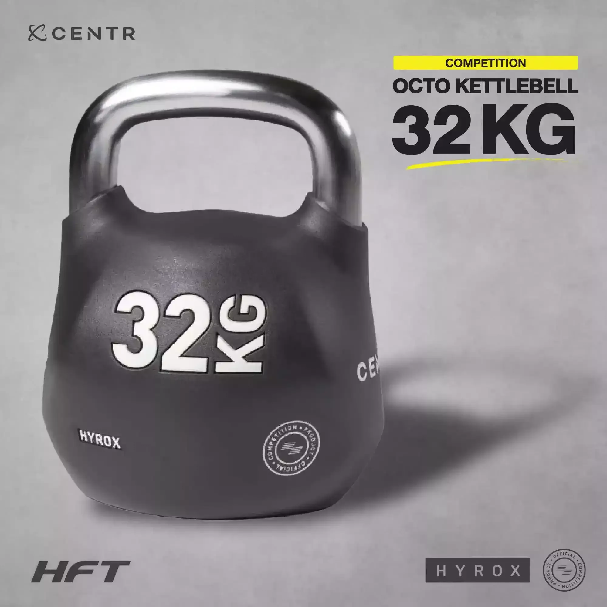 Competition Kettlebell เคตเทิลเบลมาตรฐานการแข่งขันระดับพรีเมียมจากทาง CENTR x HYROX ขนาด 16 kg, 24 kg, 32 kg ทรงแปดเหลี่ยม ป้องกันกลิ้ง ผิวเคลือบกันลื่น ยึดเกาะมั่นใจ เหมาะกับสาย Functional Training และผู้เตรียมตัวแข่งขัน HYROX