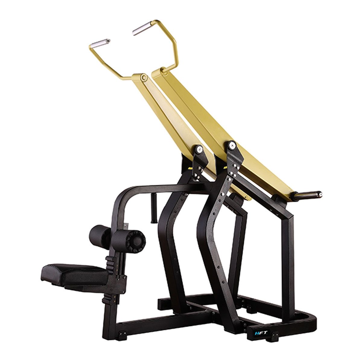 บริหารกล้ามเนื้อโดยการนั่งบนเบาะ แล้วใช้มือจับที่จับดึงด้ามจับลงมาหาลำตัว