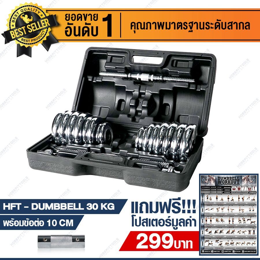 ถ้าคุณคิดที่จะออกกำลังกายที่บ้านอย่างจริงจัง ไม่ว่าจะด้วยเหตุผลที่ว่า ไม่อยากไปเสียค่าบริการของฟิตเนสแล้ว หรือว่าจะ เพิ่มความสะดวกในการออกกำลังกาย ในวันที่ไม่สะดวกไปฟิตเนส อุปกรณ์ที่คุณควรจะมีไว้เลยอย่างนึง คือ ดัมเบล นั่นเอง ตราบใดที่คุณมีดัมเบลไว้ที่บ้าน คุณสามารถออกกำลังกายสร้างกล้ามเนื้อได้แทบทุกส่วนของร่างกาย และในระยะยาวแล้ว คุณจะสามารถประหยัดเงินได้มากกว่า การเสียค่าบริการฟิตเนสเสียอีกด้วย HomeFitTools ดัมเบลปรับน้ำหนักได้ ชุด ขนาด 30 กิโลกรัม ชุบโครเมี่ยมอย่างดี เพื่อความทนทานของแผ่นเหล็ก พร้อมตัวล็อคพิเศษ 2 ชั้น และแกนจับออกแบบอย่างดีไร้รอยต่อ ให้เข้ารูปพอดีมือ และ กระชับมือมากยิ่งขึ้น