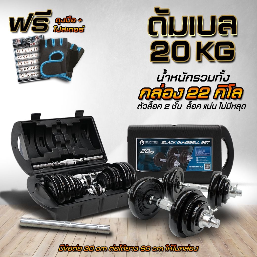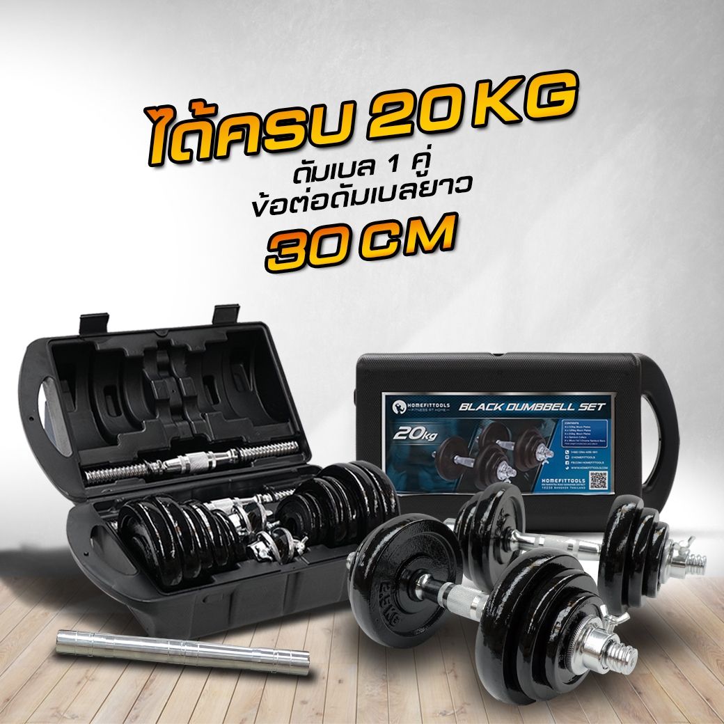 เซ็ทม้านั่งออกกำลังกาย MB3 ดัมเบล 20B Kg. เหล็กสีดำมีกล่อง แถมฟรีข้อต่อ และถุงมือ