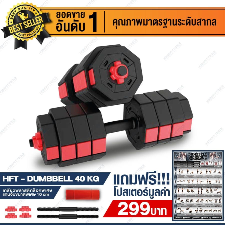 เซ็ทม้านั่งออกกำลังกาย MB3 ดัมเบล 40P Kg. พลาสติกไม่มีกล่อง แถมฟรีข้อต่อ ถุงมือ