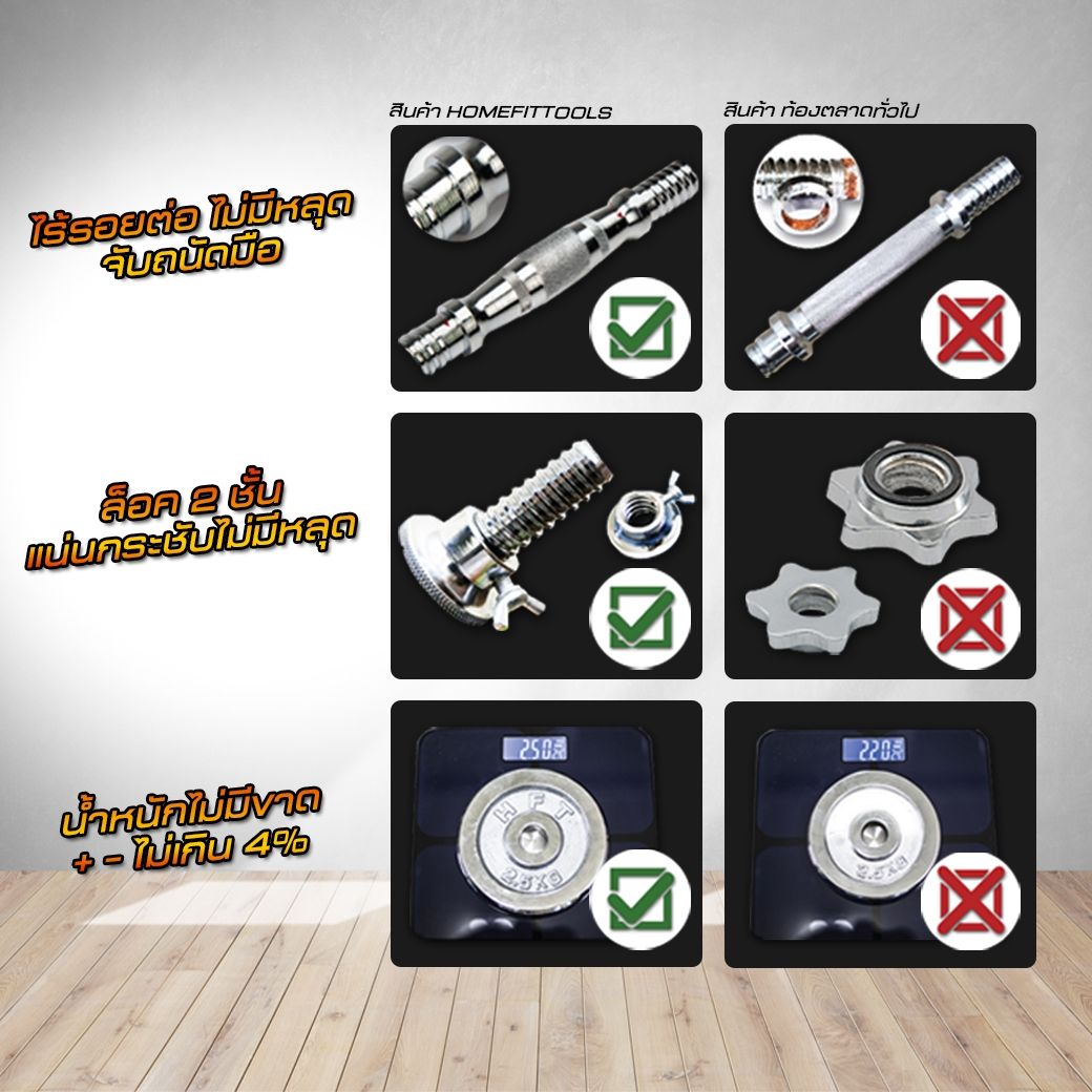 แค่มีดัมเบลชุดนี้คุณก็สามารถสร้างกล้ามเนื้อที่บ้านของคุณง่าย ๆ ได้ทุกส่วนอย่างสะดวก ใช้พื้นที่น้อย ไม่ต้องซื้อดัมเบลหลายๆ คู่เลยครับ คุณภาพแข็งแรงและทนทาน : ดัมเบลของเราได้ถูกทดสอบและคัดเลือกทุกชิ้นก่อนจะนำมาจัดจำหน่าย อายุการใช้งานยาวนาน
