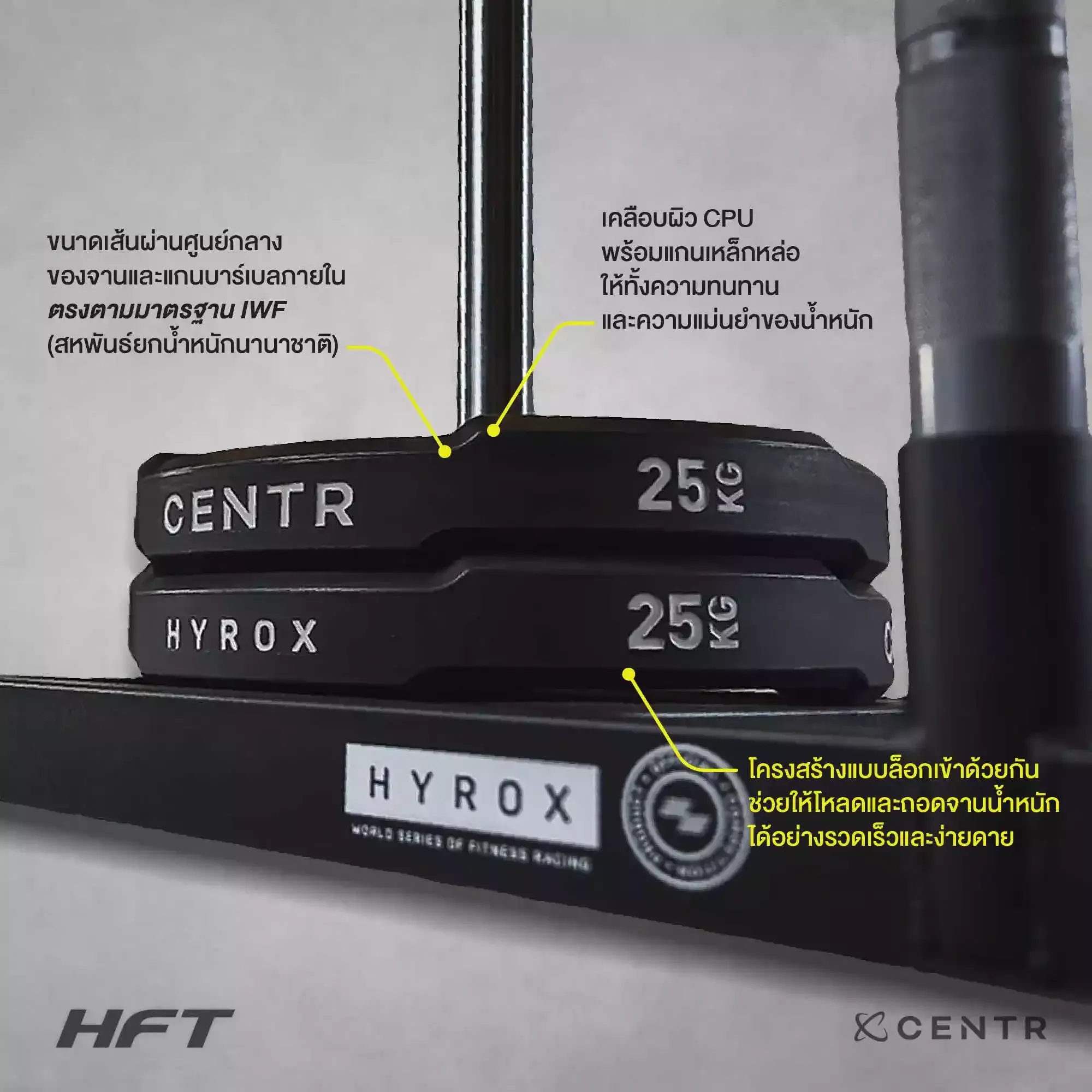 Centr คือผู้จัดหาอุปกรณ์อย่างเป็นทางการของ HYROX ที่ร่วมกันยกระดับรายการแข่งขัน HYROX World Series of Fitness Racing ด้วยอุปกรณ์การแข่งขันมาตรฐานโลก ที่ออกแบบมาโดยเฉพาะสำหรับกีฬานี้ ทั้งทนทาน แข็งแรง และรองรับการใช้งานจริงทั้งในยิม ที่บ้าน และสนามแข่ง