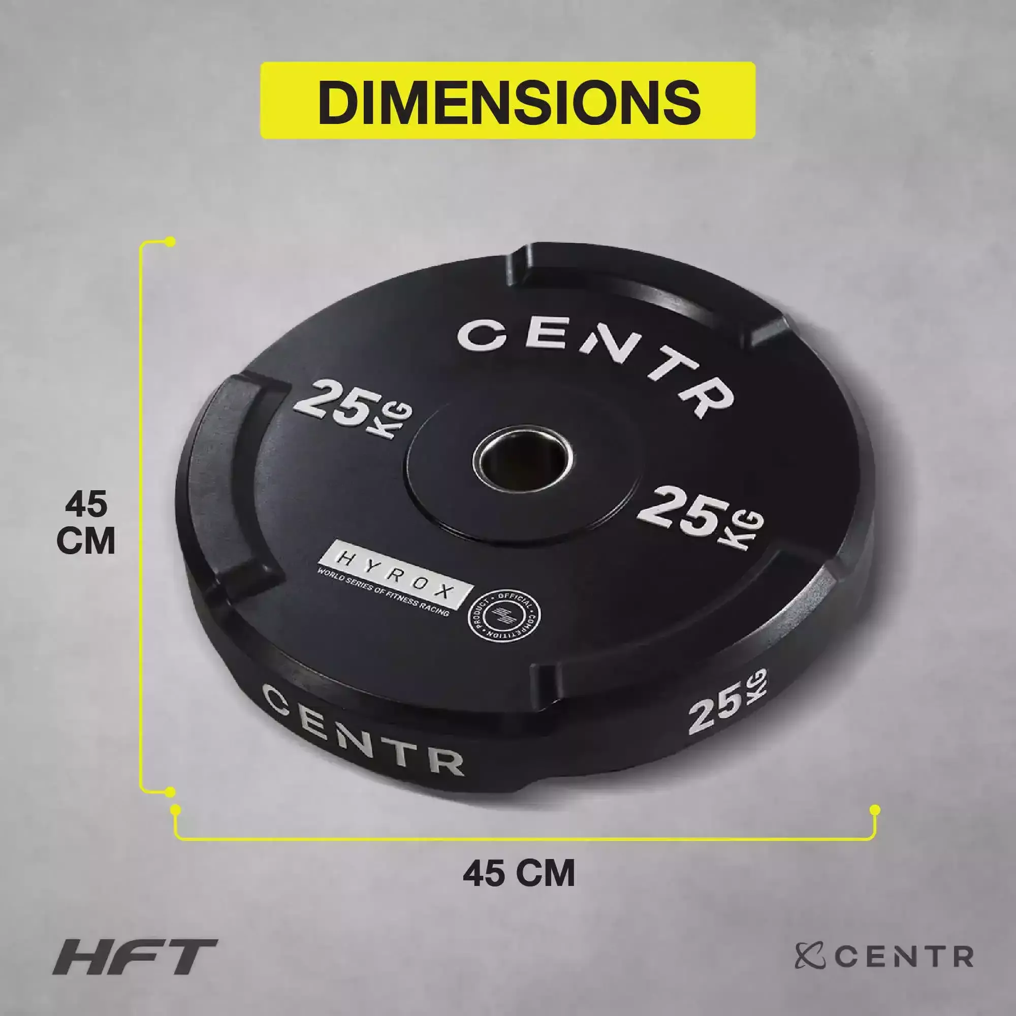 แผ่นน้ำหนัก Centr x HYROX – Competition Interlocking Bumper Plate 25 kg คืออุปกรณ์เวทเทรนนิ่งระดับแข่งขัน ที่พัฒนามาโดยความร่วมมือระหว่าง CENTR (แบรนด์สุขภาพและฟิตเนสของ Chris Hemsworth) กับ HYROX (องค์กรการแข่งขันฟิตเนสระดับโลก)