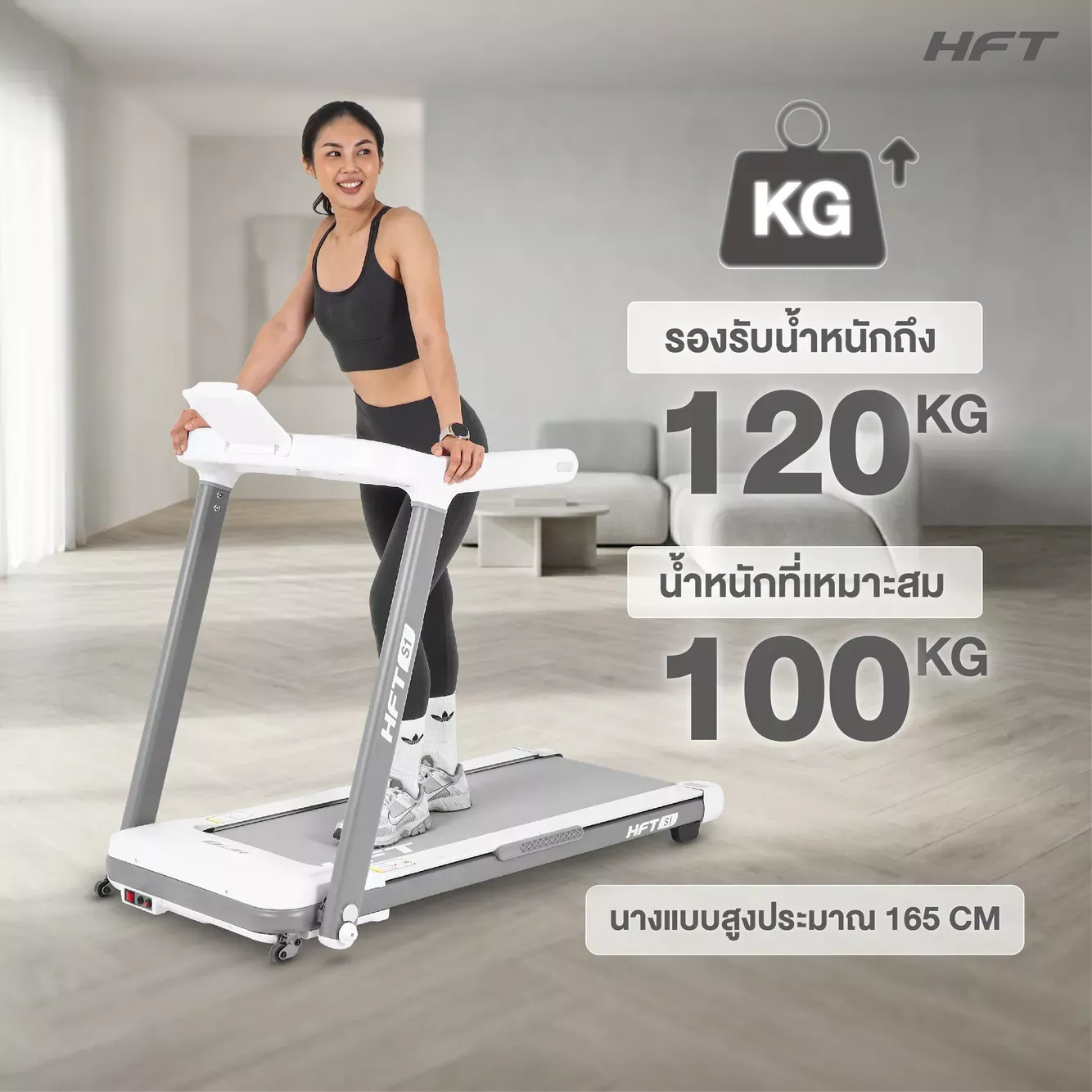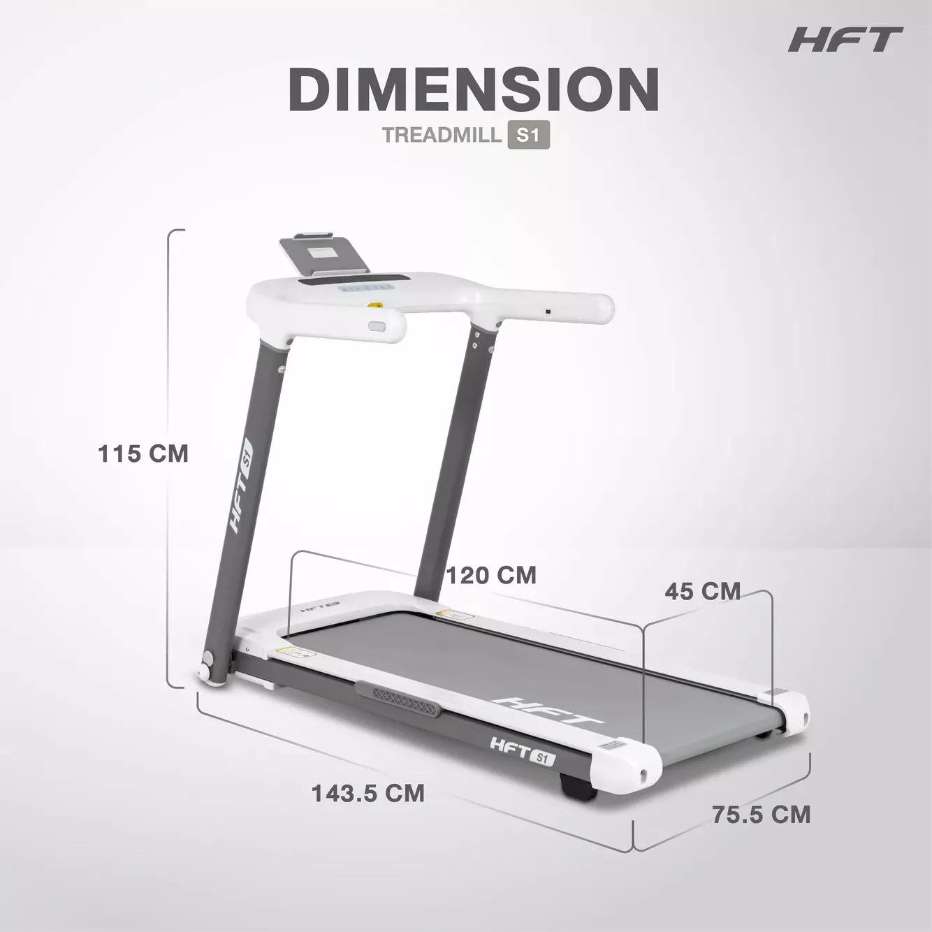 สัมผัสประสบการณ์การออกกำลังกายที่บ้านได้อย่างสมบูรณ์แบบด้วย ลู่วิ่งไฟฟ้า S1 HFT Motorized Treadmill รุ่นยอดนิยมสำหรับ ลู่วิ่งไฟฟ้าเกรดบ้าน ที่ออกแบบมาสำหรับผู้ที่ต้องการฟิตเนสครบวงจรในบ้าน รองรับน้ำหนักผู้ใช้งานสูงสุด 120 กก. และมาพร้อมระบบ DC Brushless Motor ให้กำลังสูงสุด 2.5 HP