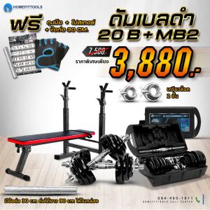 เซ็ทม้านั่งออกกำลังกาย MB-2 ดัมเบล 20B Kg. มีกล่อง แถมฟรีข้อต่อ 30 ซม. และถุงมือ