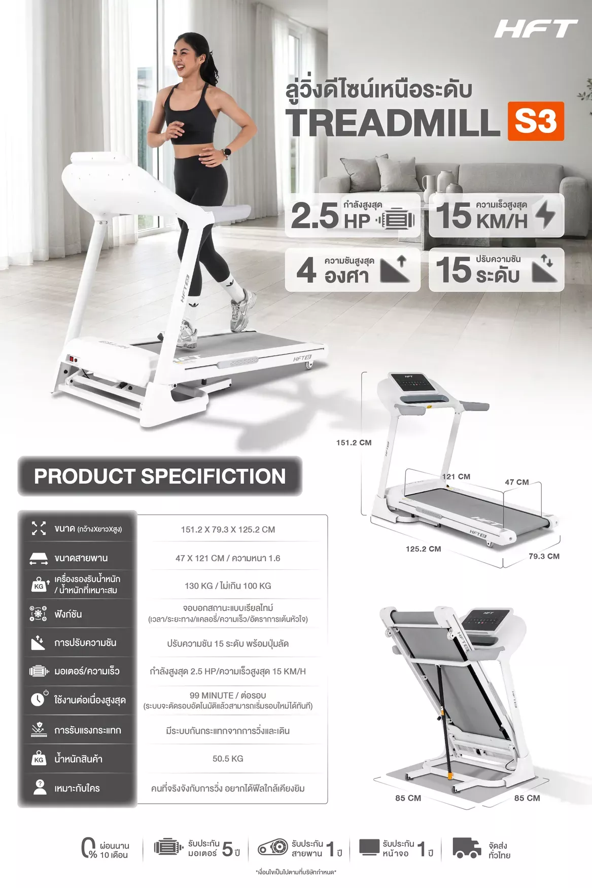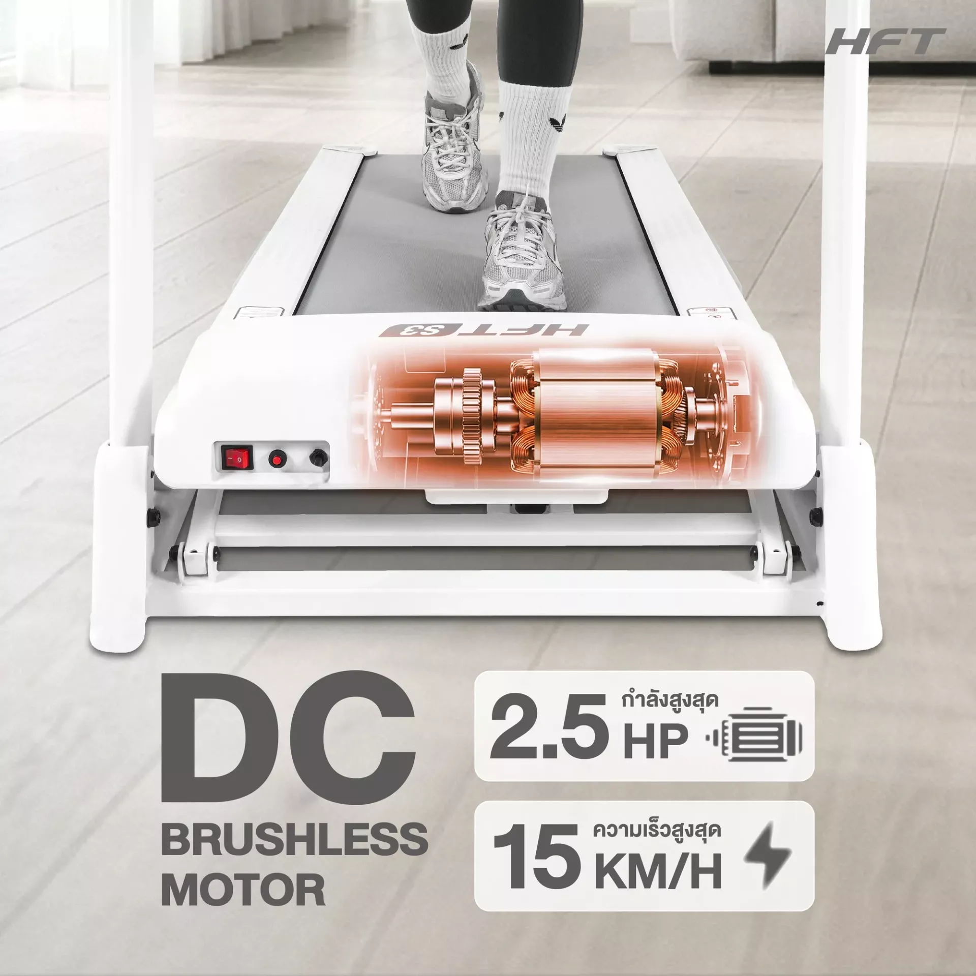 ลู่วิ่งไฟฟ้า S3 คือลู่วิ่งไฟฟ้าปรับความชันที่ออกแบบมาสำหรับผู้ที่ต้องการเครื่องออกกำลังกายที่บ้านอย่างครบครัน ด้วยมอเตอร์ Brushless 2.5HP ที่เงียบและประหยัดพลังงาน พร้อมระบบปรับความชัน Manual และ Auto สูงสุด 15 ระดับ รองรับน้ำหนักสูงสุด 120 กก. พื้นที่สายพานกว้าง 121×47 ซม. และฟังก์ชันเชื่อมต่อ Zwift และ Spax App เพื่อสร้างประสบการณ์การวิ่งที่สมจริง