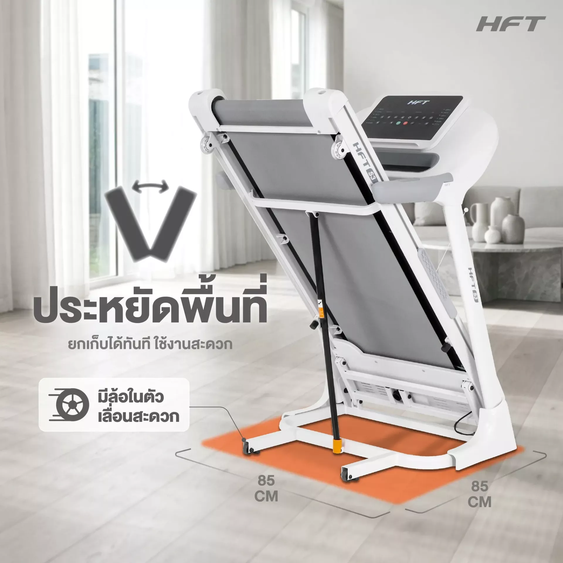 ระบบกันกระแทกแบบ Rubber-Cushion ติดตั้ง 8 จุดใต้พื้นวิ่ง ช่วย: